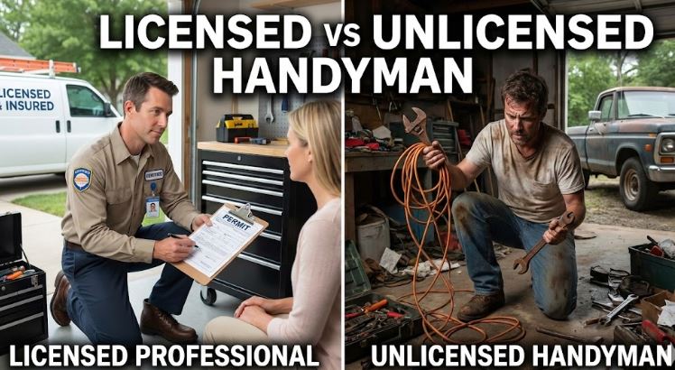 An unlicensed handyman may offer lower pricing, but often lacks proper certification, insurance, or authorization to perform certain types of work.